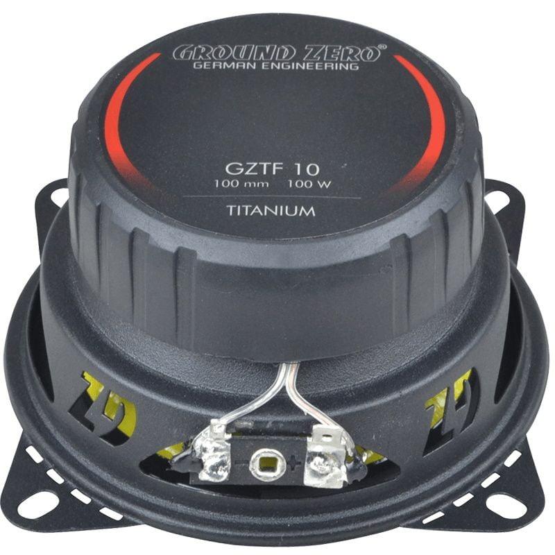 Dvosistemski zvočniki Ground Zero GZTF 10 sodijo v osnovno serijo Titanium, ki predstavlja vstopni razred zvočnikov, ki so primerni predvsem kot nadgradnja originalnih zvočnikov v vozilu in so namenjeni priklopu na avtoradio, vseeno pa zdržijo tudi osnovnejše ojačevalce.