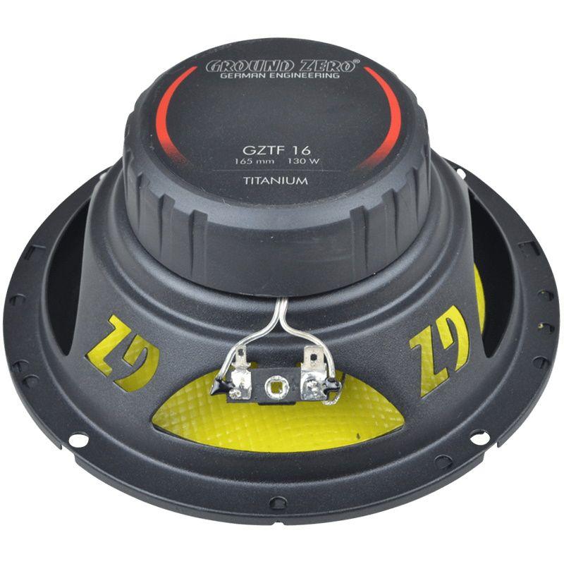Dvosistemski zvočniki Ground Zero GZTF 16 sodijo v osnovno serijo Titanium, ki predstavlja vstopni razred zvočnikov, ki so primerni predvsem kot nadgradnja originalnih zvočnikov v vozilu in so namenjeni priklopu na avtoradio, vseeno pa zdržijo tudi osnovnejše ojačevalce.