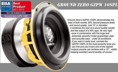 Woofer Ground Zero GZPW 10SPL predstavlja najboljši 10″ SPL woofer, kar ga ta priznana znamka proizvaja. Njegovo vsestransko kvaliteto potrjuje priznanje za najboljši avtomobilski subwoofer v letu 2011-2012.