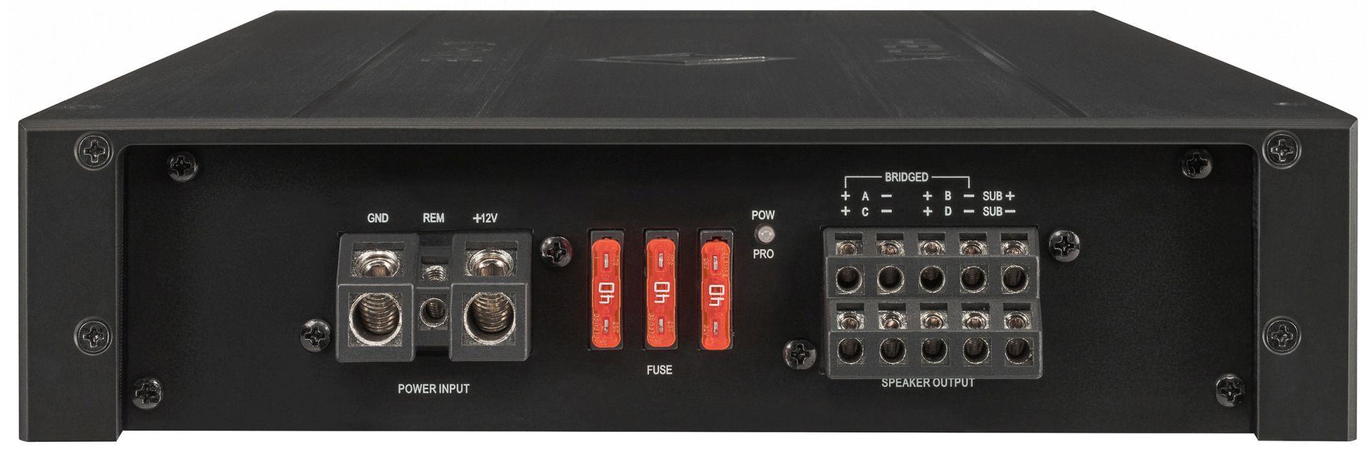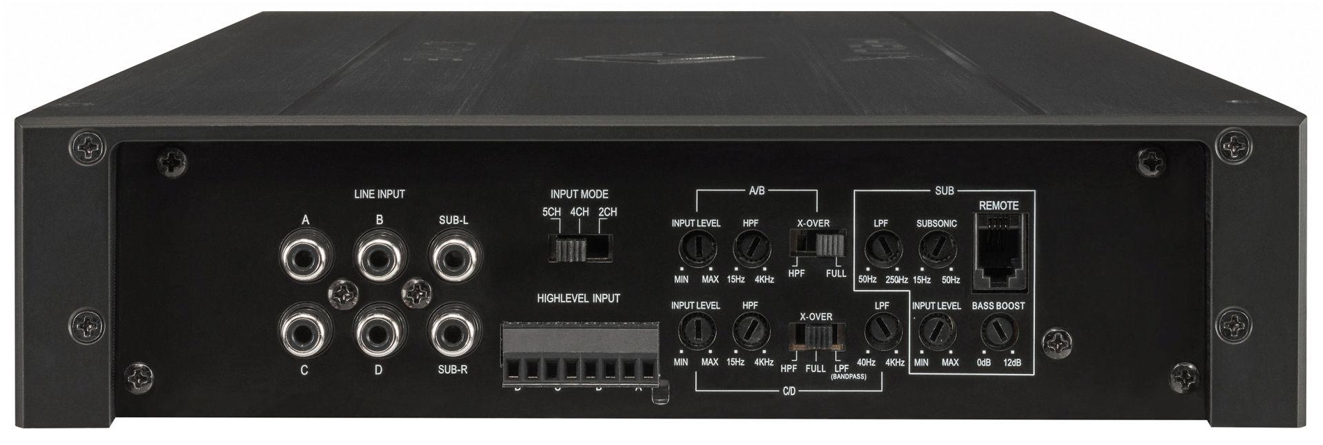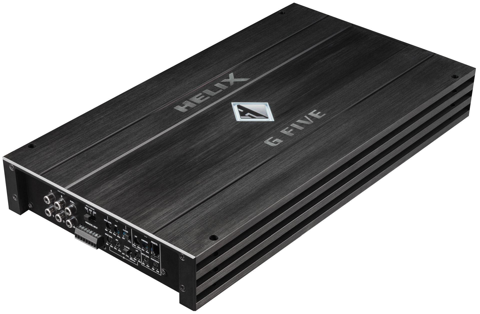 Ojačevalec Helix G FIVE ima moč 4 x 80W + 1 x 360W RMS pri impedanci 4 Ohm, to moč pa doseže pri izjemno nizkem 0.02% popačenju in razmerju signal / šum kar 105 dB! In to še ni vse – v kompletu je priložen tudi žični daljinski upravljalnik za preprosto prilagajanje glasnosti nizkotonca.