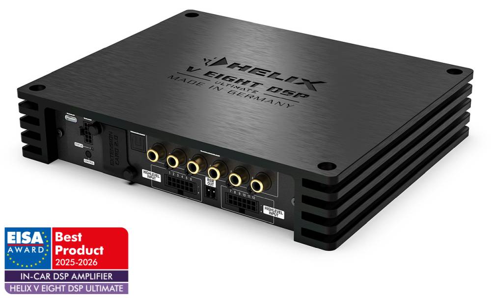 12 High-level vhodov, 6 RCA vhodov, 14-kanalni DSP procesor ter 6 RCA izhodov in 8 močnostnih izhodov z močjo vse do 270W RMS @ 2 Ohm, združenih v ultra-kompaktnem ohišju velikosti manjši od dveh standardnih kuvert! Novi Helix V EIGHT ULTIMATE predstavlja zares ultimativno orodje za rešitev problema nadgradnje premijskih večkanalnih zvočnih sistemov v modernih vozilih.