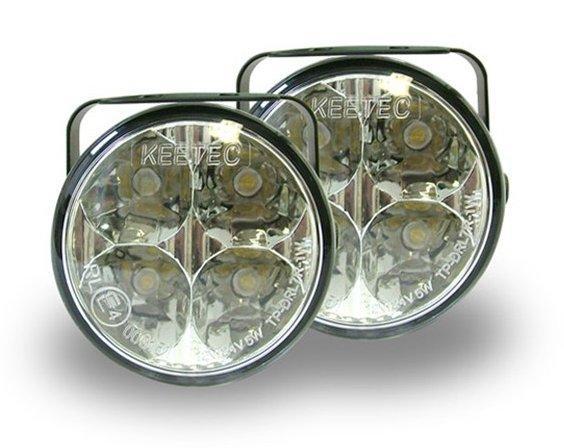 Set dnevnih LED luči Keetec DRL 7R-1W vsebuje par okroglih dnevnih luči z vgrajenimi 4x 1W High-Power LED diodami z dolgo življenjsko dobo delovanja. Z vgrajeno avtomatiko za samodejen vklop ob zagonu vozila in samodejen izklop ob vklopu zasenčenih luči pripomorejo k zmanjšanju energije in s tem manjši porabi goriva, hkrati pa podaljšuje življenjsko dobo halogenskim ali xenonskim žarnicam, ki ne delujejo več čez dan.