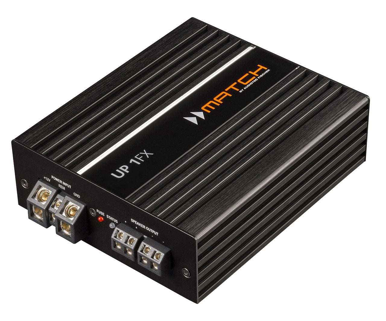 Ojačevalec Match UP 1FX doseže maksimalno 1 x 900W RMS (1 Ohm) pri izjemno nizkem popačenju pod 0,002% in razmerju signal / šum kar 108 dB! Damping faktor pri tem ves čas ostaja nad 160.