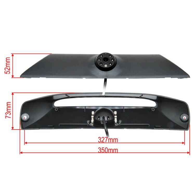Kamera ima posebej kvaliteten CCD slikovni senzor znamke Sharp, ki pokriva kot 170° in ima vgrajene IR diode, ki omogočajo, da vidite do 9m daleč tudi v popolni temi. Kamera ima integrirano lečo tretje zavorne luči, kar omogoča enostavno montažo in nemoteč izgled, ki je podoben tovarniški rešitvi.