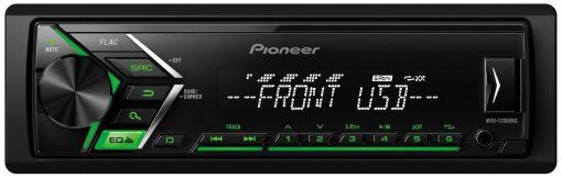 MVH-S100UBG ima na prednji ploščici USB vhod, ki bere FLAC, MP3, WAV in WMA avdio datoteke. Avtoradio ima spredaj še AUX vtičnico, ne podpira pa predvajanja CD-jev, saj nima CD reže.