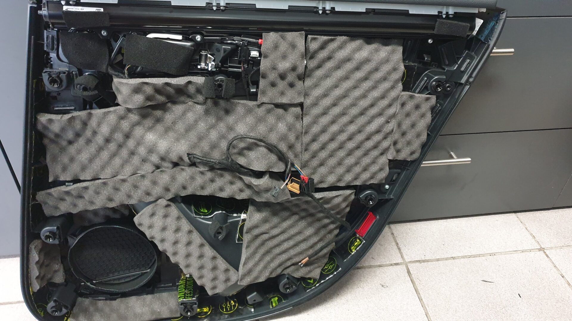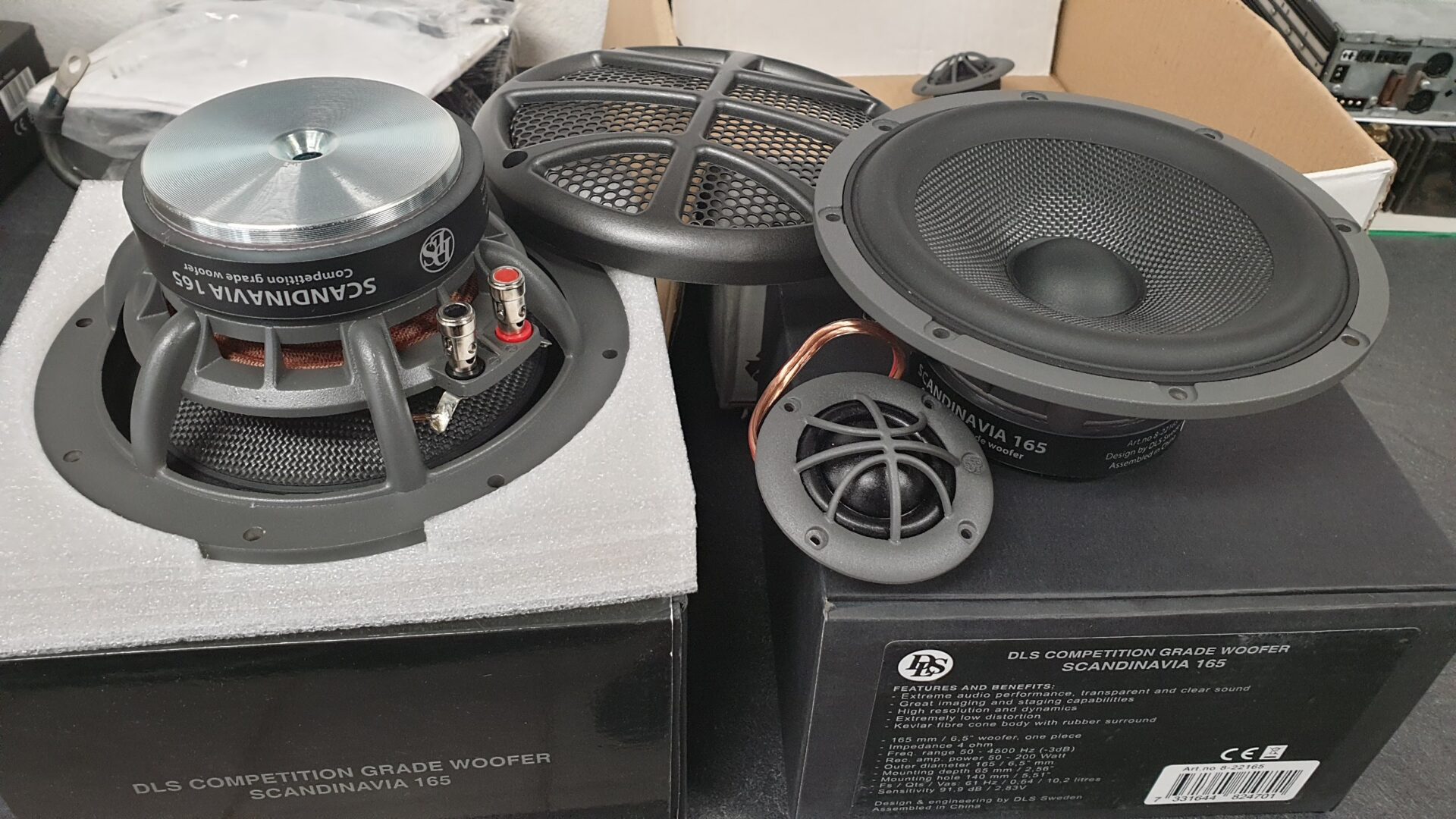 Najprej smo zamenjali tovarniške zvočnike na sprednjih vratih z visokokakovostni komponentni zvočniki DLS Scandinavia, ki zagotavljajo izvrsten srednjetonski zvok in odlično zvočno definicijo. Za zadnja vrata smo ohranili zvočnike, ki jih je stranka prinesla s seboj, Focal RSE165, ki kljub starosti še vedno zagotavljajo dobro kakovost zvoka.