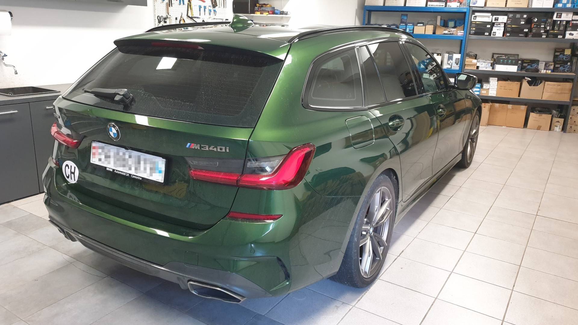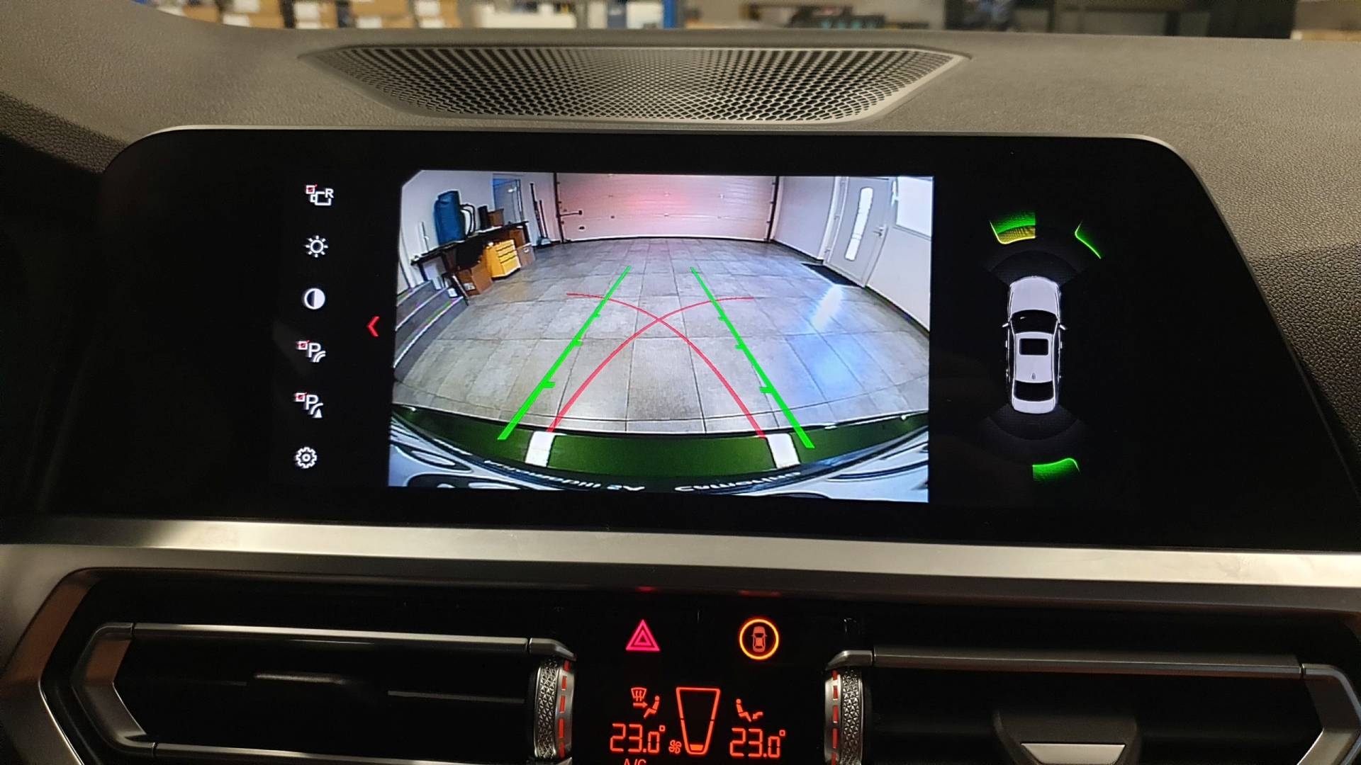 V BMW M340i (letnik 2021) smo naknadno vgradili vzvratno in sprednjo parkirno kamero s prikazom na tovarniškem sredinskem zaslonu. Sprednja kamera se po izključitvi vzvratne prestave (in s tem prikaza zadnje kamere) samodejno aktivira in prikazuje sliko 10, 15 ali 20 sekund (se nastavi po želji stranke), lahko pa se tudi ročno vključi/izključi kadarkoli med vožnjo za neomejen čas, in sicer s pomočjo ene od obstoječih originalnih tipk na sredinski konzoli.