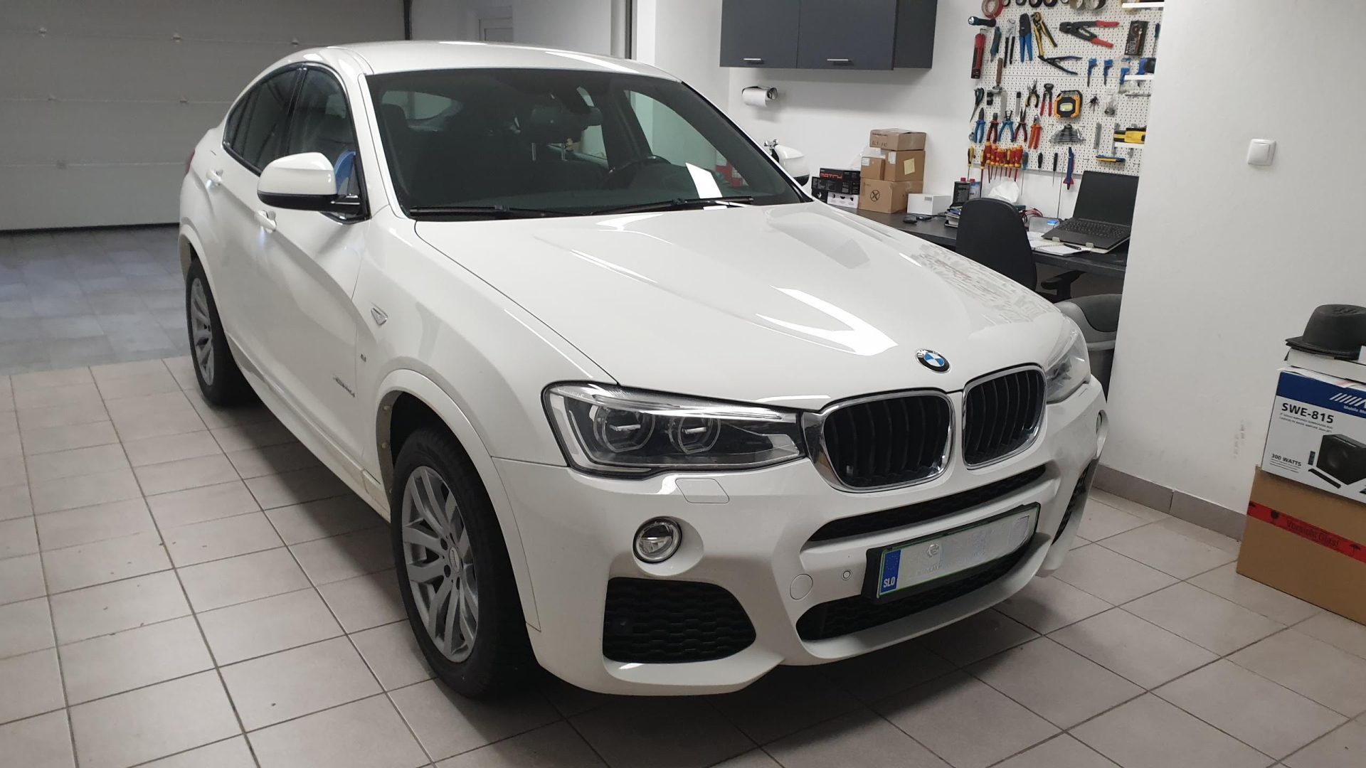V vozilu BMW X4 z osnovnim tovarniškim avdio sistemom, ki vključuje štiri 10-centimetrske zvočnike v vratih in dva 16,5-centimetrska nizkotonca pod sprednjima sedežema, smo izvedli nadgradnjo avdio sistema.