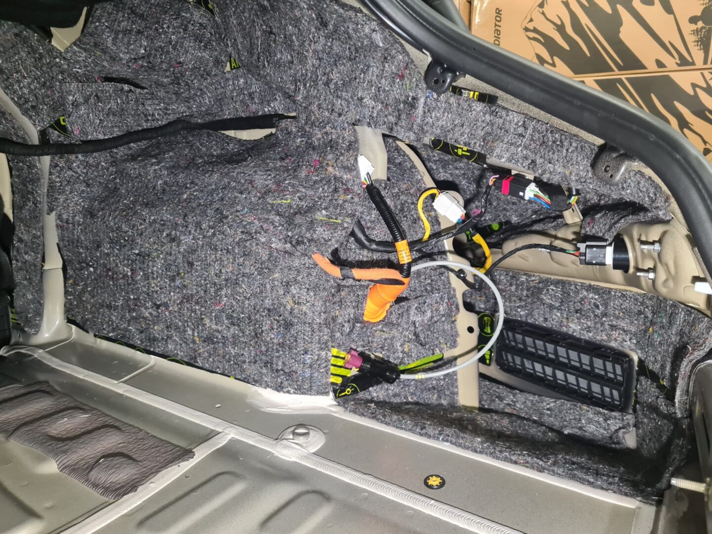 Na vibroizolacijo smo nato namestili kombinacijo dodatnih izolacijskih materialov. CTK Elastic F10 služi kot dodatna plast za dušenje in toplotno izolacijo. CTK WaveFix 15 s svojo valovito strukturo učinkovito absorbira zvočne valove in preprečuje odboje zvoka v notranjosti panelov. CTK CaiMat 8 je bil nameščen kot zaključni absorpcijski sloj, ki dodatno absorbira preostali hrup v višjih frekvenčnih območjih. Na kritičnih mestih, kjer se pojavljajo škripanja in trenja med plastičnimi obloga, smo uporabili še CTK SilenceFix 5, ki odpravlja t.i. “anticreak” problematiko.