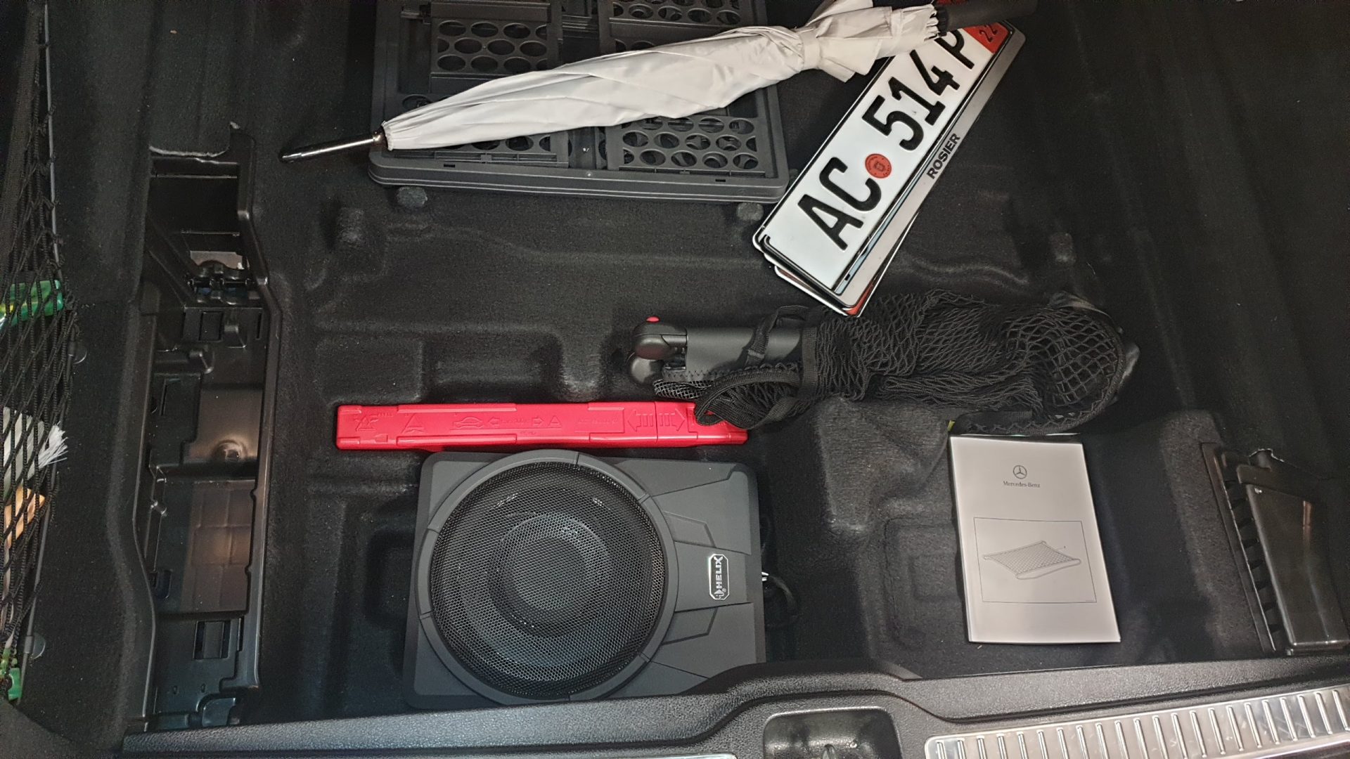 Za okrepitev nizkih tonov smo v dvojno dno prtljažnika diskretno vgradili kompakten 25-centimetrski aktivni nizkotonec Helix U 10A. Ta nizkotonec združuje kakovost zvoka, močan bas in majhno potrebo po prostoru, saj se zaradi tankega ohišja iz litega aluminija lahko vgradi v dvojno dno prtljažnika ali celo pod sedež. Poganja ga vgrajen Class AB ojačevalnik z močjo 180 W RMS, kar omogoča bogato in globoko zvočno izkušnjo brez žrtvovanja prostora v prtljažniku.