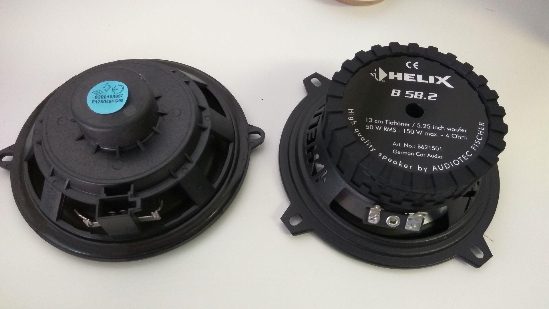 V novejšem modelu Renault Kangoo-ja smo zamenjali tovarniške zvočnike v vratih s kvalitetnim komponentnim sistemom Helix B52C.2, ki z odzivnostjo 90 dB/W igra odlično, kljub primanjkljaju Watt-ov iz tovarniškega radia.