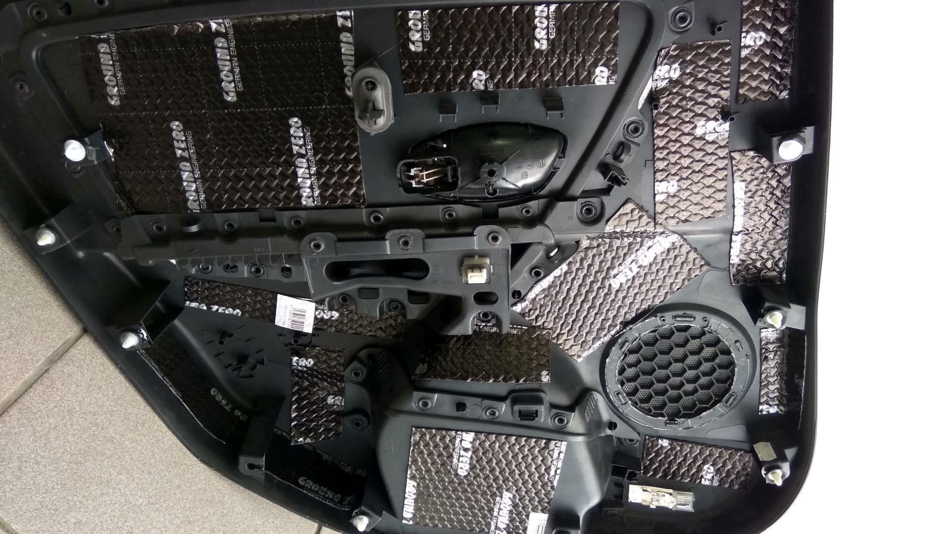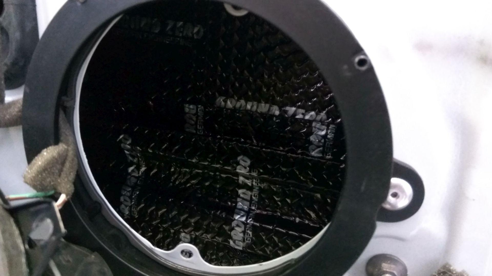 Vsa štiri vrata in vratne obloge smo temeljito izolirali z bitumenskim materialom, ki “utiša” pločevino in plastiko na vratih s tem, da preprečuje njeno vibriranje zaradi delovanja zvočnikov ob višji glasnosti.