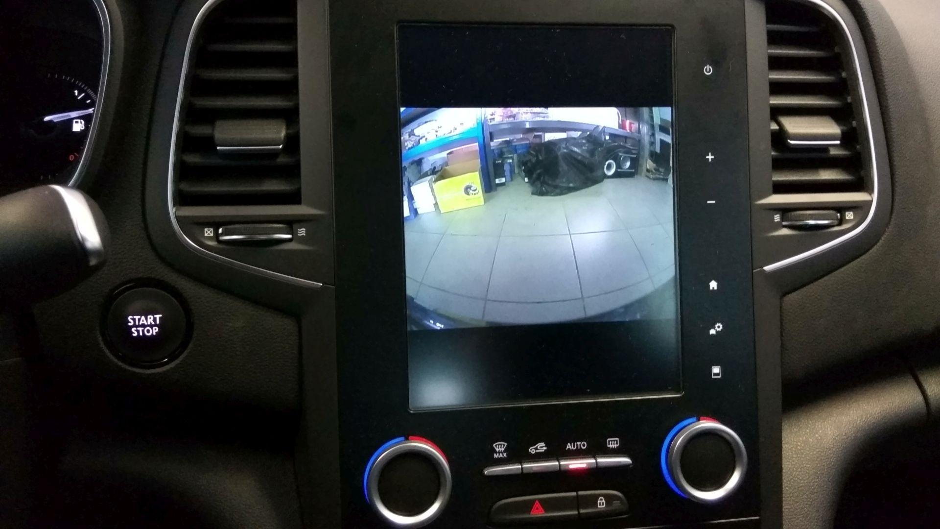 Novemu Renault Megane-u smo za preglednejše parkiranje namestili prednjo in zadnjo parkirno kamero s prikazom na zaslonu tovarniške navigacije. Vklop zadnje kamere je samodejen ob vklopu vzvratne prestave, prednja pa se vključi ročno, z daljšim pritiskom na obstoječ gumb avtoradia.