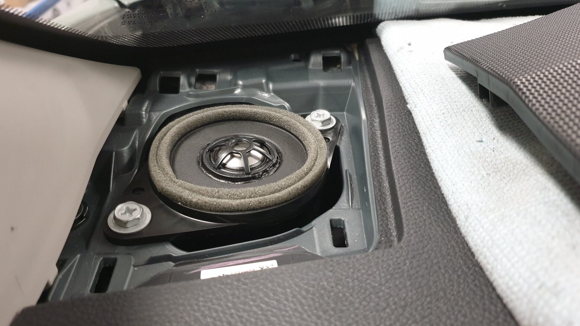Poleg tega smo tovarniške zvočnike nadomestili z novimi komponentami: spredaj smo vgradili visokotonca Helix Ci3 T20FM-TI in nizko/srednjetonca Helix Ci3 W165FM-S3, medtem ko smo zadaj namestili rabljene zvočnike Crunch DSX62, ki jih je priskrbel lastnik vozila.